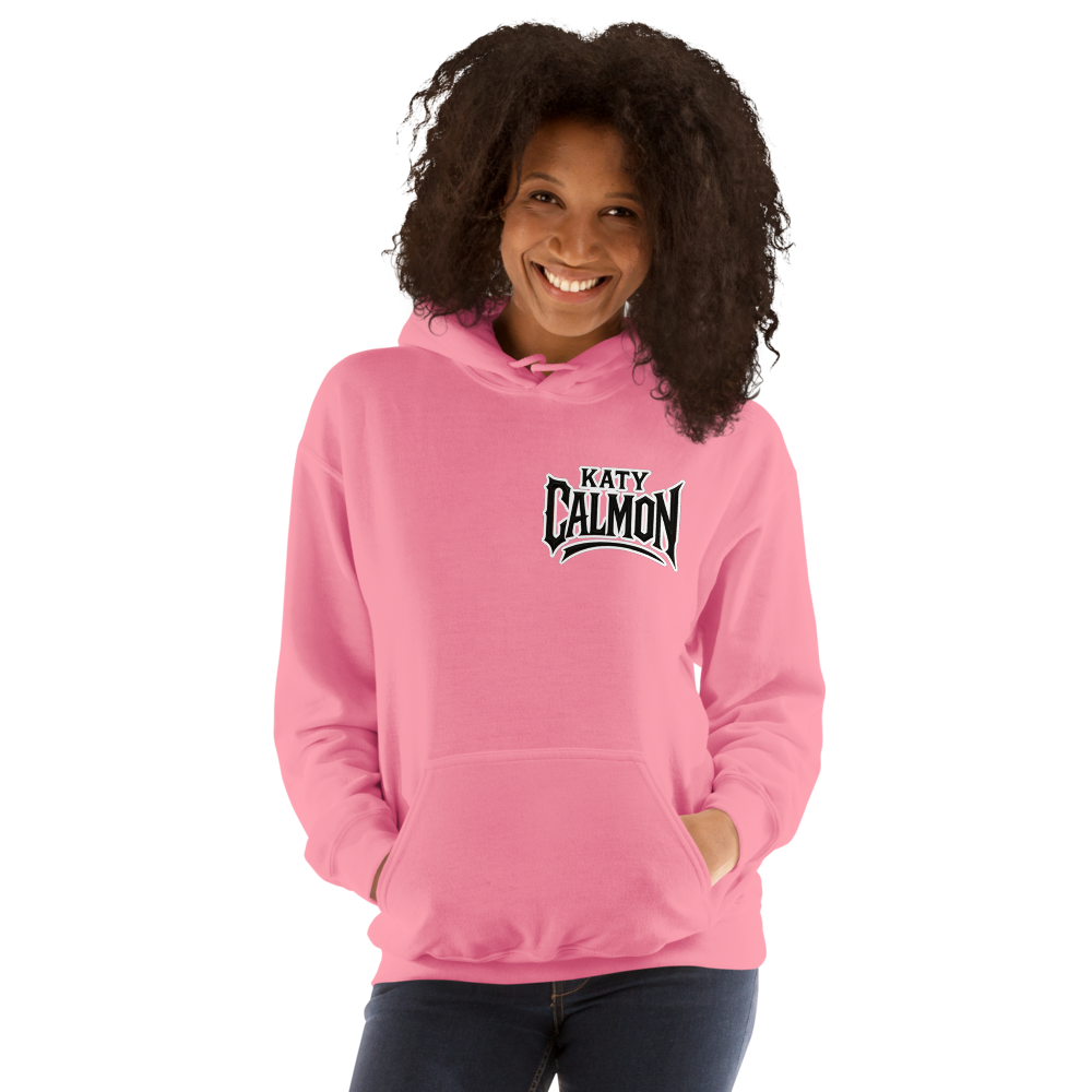 À l’avant, le logo Katy Calmon reste sobre et élégant. À l’arrière, l’illustration complète donne au sweat un look percutant impossible à ignorer.