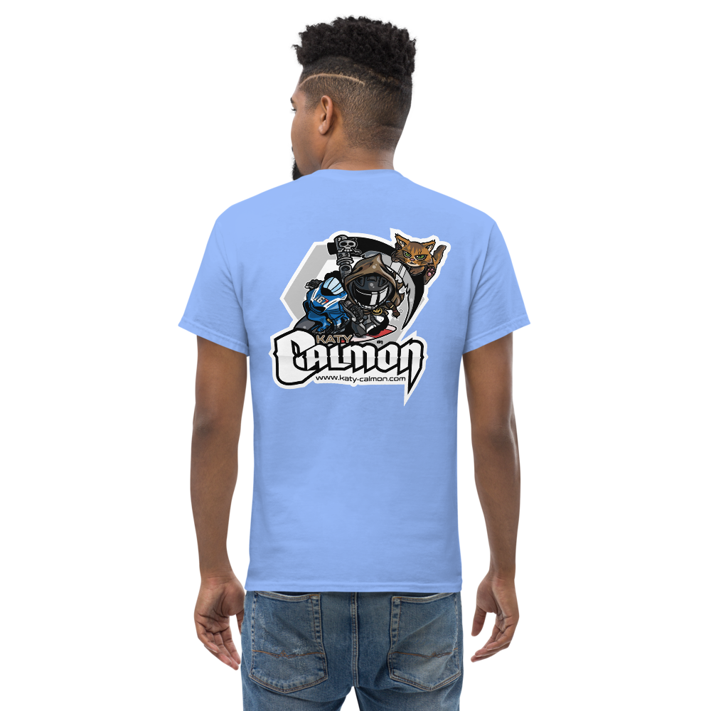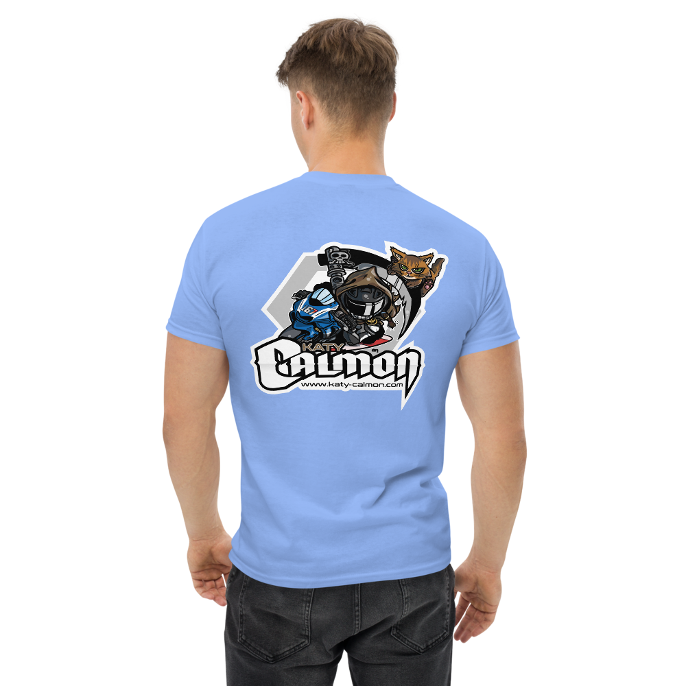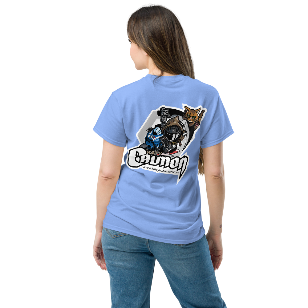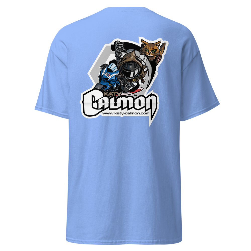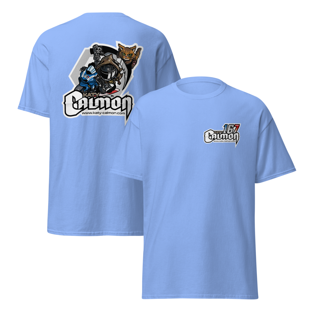 La couleur Carolina Blue, douce et lumineuse, apporte une allure fraîche et tendance. Sur le devant, le logo Calmon 167 donne une touche sportive et dynamique. À l’arrière, le design complet avec la mascotte et le logo officiel met en valeur tout l’univers Katy Calmon avec puissance et précision 🏍️⚡🐱